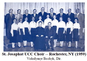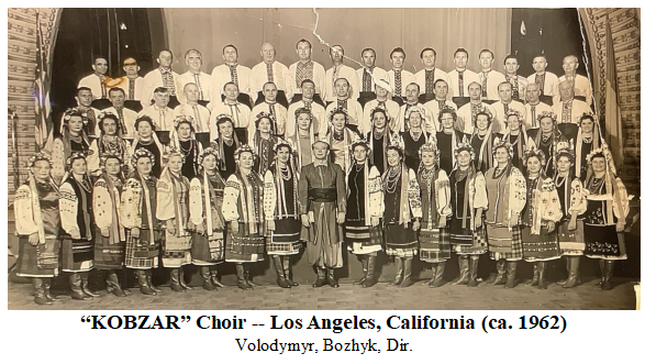 Volodymyr Bozhyk [Володимир Божик], (b. Dec. 27, 1908, in Rava Ruska, Ukraine; d. in Los Angeles, CA), one of the early directors of the Taras Shevchenko Ukrainian Bandurist Chorus. He studied voice and choral conducting at the Lviv Conservatory.  In 1940, he was installed as the artistic director for the opera house in Stanislaviv (today Ivano-Frankivsk). He joined the Bandurist Chorus in 1946 and co-directed the ensemble with Hyhory Kytasty. Bozhyk came to America in 1949. Under the leadership of Kytasty and Bozhyk, the Bandurist Chorus gave performances throughout North America and Europe. After a short time directing the choir at St. Josaphat’s in Rochester (1959), he moved to California where he became the choirmaster for the Nativity of the Blessed Virgin Mary UCC and the “Kobzar” Ukrainian National Choir.