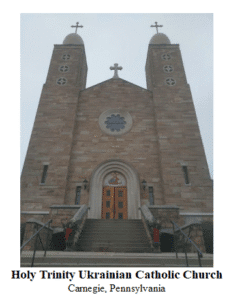 Msgr. Russell Danylchuck [о. Ярослав Дaнильчук], (Dec. 9, 1922, in Wilkes-Barre, PA.; June 2, 1984, in Carnegie, PA), founder and first pastor of Holy Trinity Ukrainian Catholic Church in Carnegie, Pennsylvania. His father, Simeon Danylchuck, was the choir director for many years at St. Michael’s in Frackville, Pennsylvania. He studied for the priesthood in Stamford, Connecticut, and Washington, D. C. and was ordained in 1947. He passed away in 1984 and is buried in the parish cemetery in Carnegie.