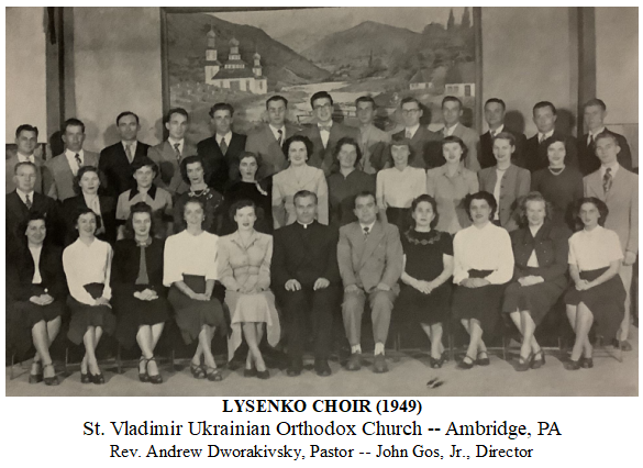 Rev. Andrew Dworakivsky [Андріӣ Двораківскиӣ] (b. in western Ukraine; d. May 16, 1976, in Northampton, PA). Musician, composer, and priest. Father Dworakivsky loved fine Ukrainian liturgical music. During his tenure as pastor at St. Vladimir Ukrainian Orthodox Church in Ambridge, PA, he organized and directed the parish’s Lysenko Choir. In later years (1952-1960) he served at St. Mary Ukrainian Orthodox Church in McKees Rocks, PA. He was reassigned in 1961 to the parish at the Assumption of the Holy Virgin in Northampton, PA, where he remained until his death on May 16, 1976.