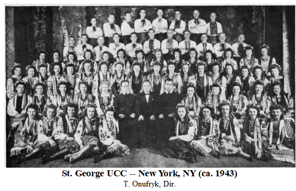 Theodore Onufryk [Теодор Онуфрик], (b: May 25, 1891, in Western Ukraine; d: Sept. 17, 1987, in New York, NY). He received his musical training at conservatories in Vienna and Lviv. Before the outbreak of WWI, he left Ukraine and immigrated to New York City, where in 1919 he became the choir director at St. George Ukrainian Catholic Cathedral. He succeeded in developing one of the best choral ensembles in the city. Under his leadership, the choir sang in places like St. Patrick’s Cathedral (1942), Carnegie Hall, Town Hall, and Madison Square Garden.
