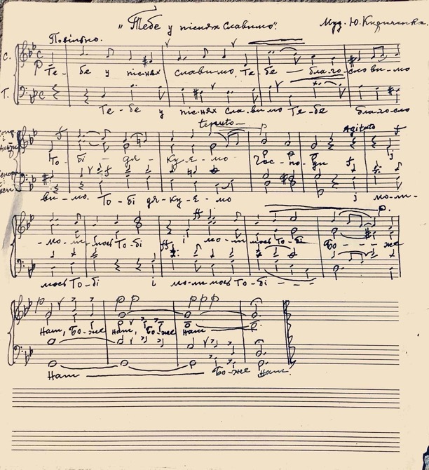 Yuri Kyrychenko [Юрій Кириченко], (b. in 1888 in the village of Luka-Meleshkivska, Vinnytsia district, Ukraine; d. July 2, 1951, in New York, NY), former singer in the Ukrainian National Chorus conducted by Alexander Koshetz, and director of choirs in New York City. He studied music with Mykola Lysenko at the Lysenko Institute in Kyiv, which is where he met Alexander Koshetz, another student at the Institute. Kyrychenko later became a soloist with the Ukrainian National Chorus led by Koshetz. In 1921, when Koshetz became ill, Kyrychenko was asked to fill in as interim conductor of the Capella. Yuri Kyrychenko came to America in 1925 and became the choir director at St. Volodymyr Ukrainian Orthodox Cathedral in New York City. At the end of 1927, he organized a community choir called “Bandurist,” which gave hundreds of concerts and made recordings for Columbia Records. He drowned in 1951 while swimming in the ocean.
