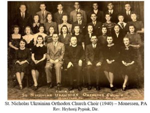 Rev. Hryhorij Pypiuk [Григориӣ Пипюк], (b. 1887 in Ukraine; d. 1962 in South Bound Brook, NJ). Rev. Hryhorij Pypiuk was born 1887 in Ukraine. He came to America in 1908. In 1929, he entered the priesthood and became known to all as Father “Harry.” His first assignments were at parishes in Pennsylvania (Sharon and Butler). Then in 1932, he was sent to St. Nicholas Ukrainian Orthodox Church in Monessen, where he remained for the next 21 years. He died in 1962 in South Bound Brook, NJ.