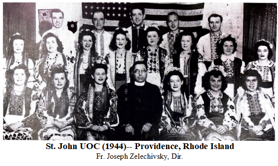 Rev. Joseph Zelechivsky [Йосиф Желехівський], (b. January 6, 1890, in the village of Borynia, Lviv, Ukraine; d. November 13, 1980, in Providence, RI). One of the first priests and founders of the UOC of the USA. Fr. Zelechivsky was born in the village of Borynia, Lviv oblast, Ukraine on January 6, 1890. He came to America in October 1912 and was ordained to the priesthood in Chicago in 1919. He served Ukrainian Orthodox parishes in Kansas City, KS (1920-1924), Ukraina, ND (1924-1927), Trenton, NJ (1927-1928), Millville, NJ (1928-1929), Boston, MA (1929-1936), Pittsburgh, PA (1936-1941), Johnson City, NY (1941-1944), Providence and Manville, RI (1944-1962). Wherever he went, he organized performing groups for the purpose of staging concerts, plays, and musicals. He often collaborated with the composer Michael Hayvoronsky. His family members likewise were involved in the arts. Daughter Irene was the church choir director in Johnson City, NY (St. John, 1941), and son Myroslav directed in Pittsburgh (St. Vladimir, 1936), Chicago (Boyan Choral Society at St. Vladimir Church, 1951), and elsewhere. Fr. Joseph passed away on November 13, 1980, and is buried at St. John’s Parish Cemetery in Johnson City, NY.